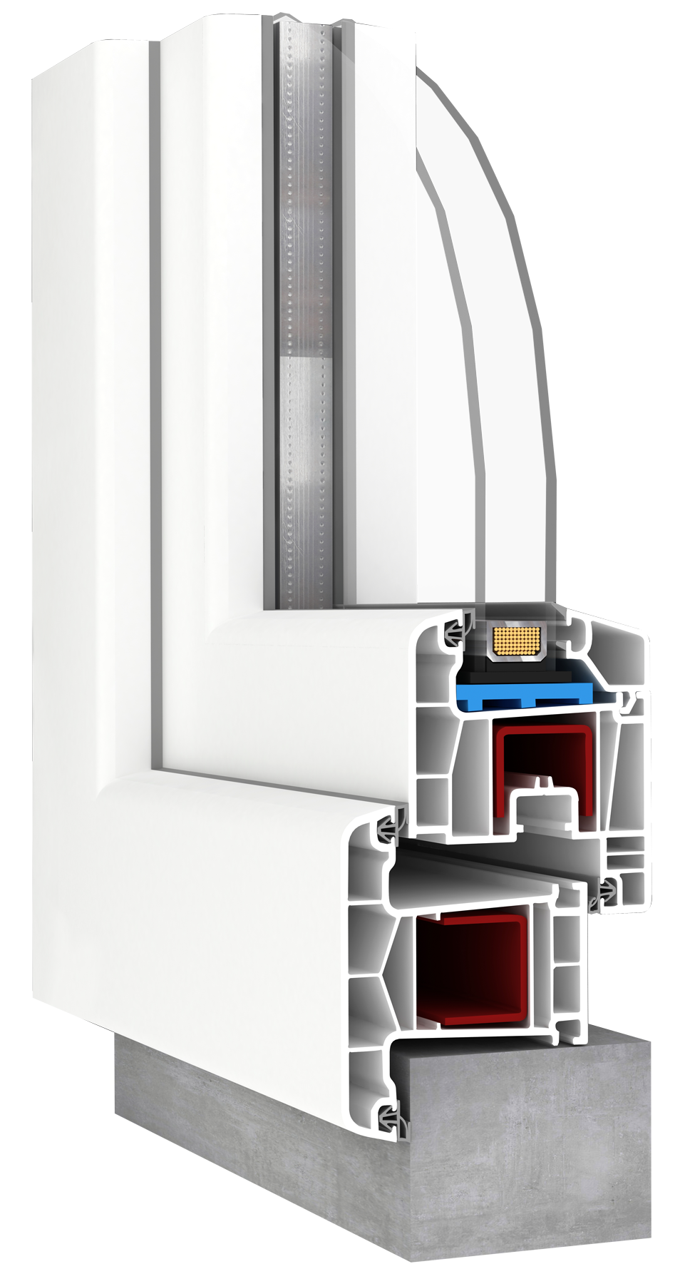 Onze kozijnen zijn standaard uitgerust met een 71mm kozijn & 71mm vleugel profiel dat bestaat uit 5 kamers, dit profiel is intern verstevigd met gegalvaniseerd staal. Het kozijn wordt ook standaard geleverd met HR++ dubbelglas. Deze combinatie samen zorgt voor een isolatiewaarde van 1,1 Ug. Het kozijn is dus zeer energiebesparend waardoor uw energiekosten omlaag zullen gaan.